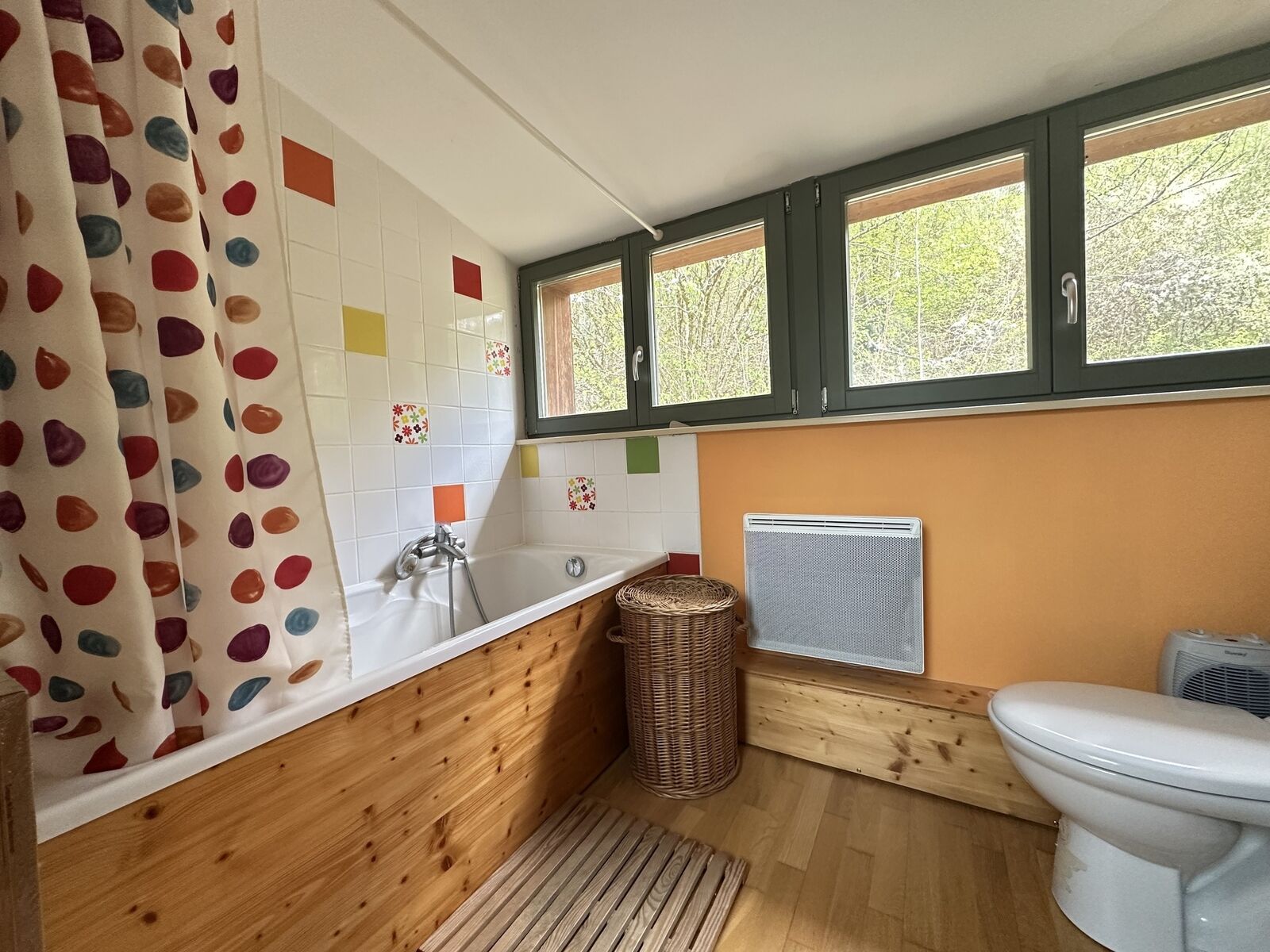 Côté prestations, le chauffage électrique ( réglable à distance)assure une chaleur douce et maîtrisée. possibilité de poêle à bois.